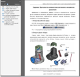 По каждой теме излагаются краткие теоретические сведения, приводится несколько заданий на выполнение практических и самостоятельных работ (PDF формат, рис. 4, а), подготовлены видеоролики, демонстрирующие порядок выполнения заданий (AVI формат, рис. 4, б), и приводятся требуемые результаты в виде разработанных моделей (формат 3DXML, рис. 4, в):