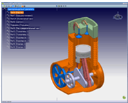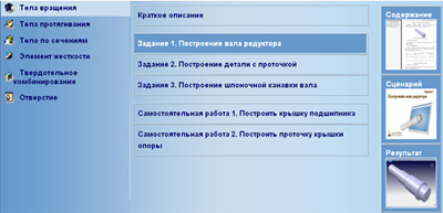 По каждой теме излагаются краткие теоретические сведения, приводится несколько заданий на выполнение практических и самостоятельных работ (PDF формат, рис. 4, а), подготовлены видеоролики, демонстрирующие порядок выполнения заданий (AVI формат, рис. 4, б), и приводятся требуемые результаты в виде разработанных моделей (формат 3DXML, рис. 4, в):